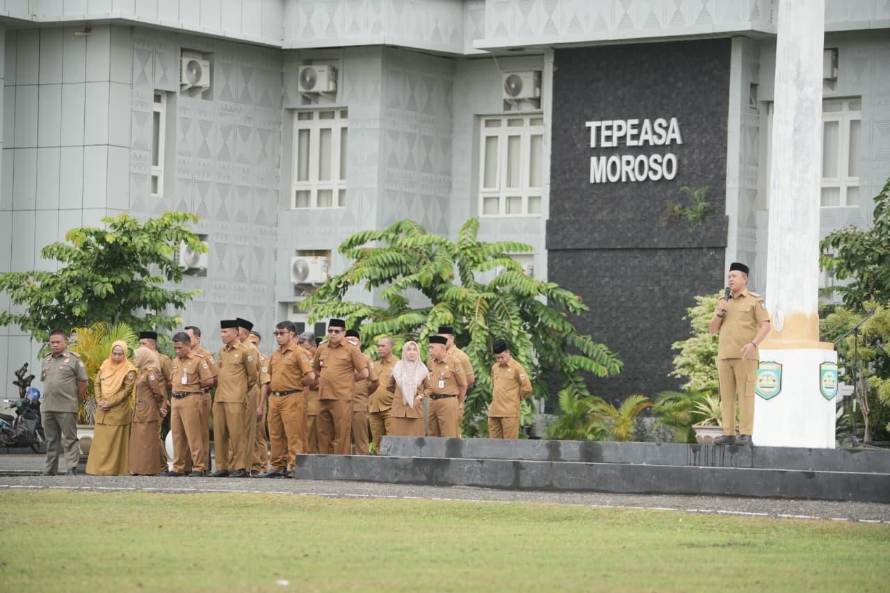 KHABARNEWS – Bupati Morowali, Iksan Baharudin Abdul Rauf, menegaskan pentingnya perencanaan program yang terarah dan tepat sasaran dalam apel pagi lingkup Pemerintah Kabupaten Morowali. Ia mengingatkan seluruh perangkat daerah agar tidak menyusun program secara sembarangan tanpa kejelasan output.