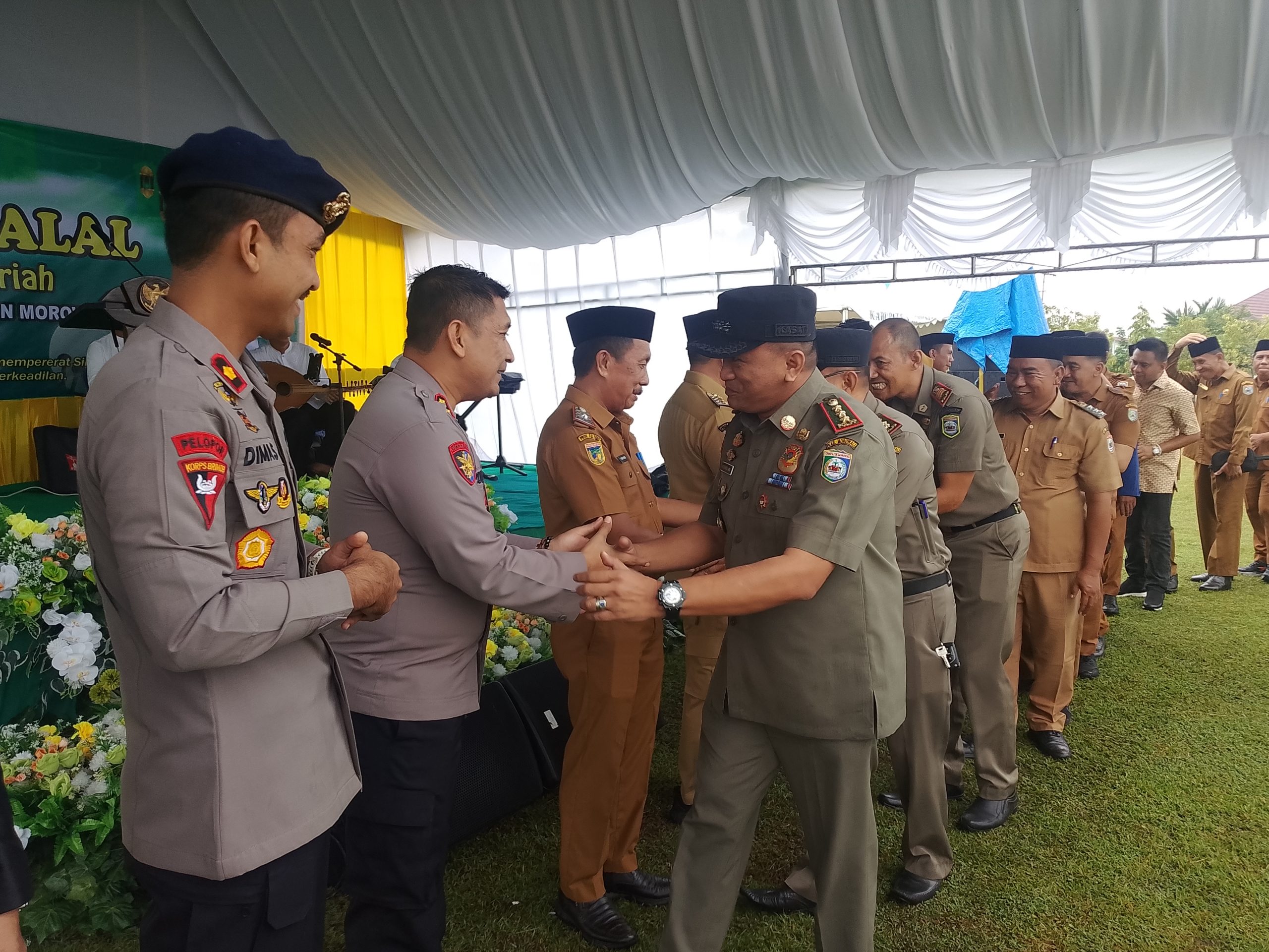 KHABARNEWS – MOROWALI – Suasana khidmat dan penuh kebersamaan terlihat di lapangan Kantor Bupati Morowali, Desa Bente, Kecamatan Bungku Tengah, pada Senin (30/3/2026). Rangkaian acara Halal bihalal dalam rangka Idulfitri 1447 Hijriah tersebut dihadiri oleh Kepala Satuan Polisi Pamong Praja dan Pemadam Kebakaran (Pol PP dan Damkar) Kabupaten Morowali, H.M. Syahrul Amin, S.E., beserta seluruh jajaran anggotanya.