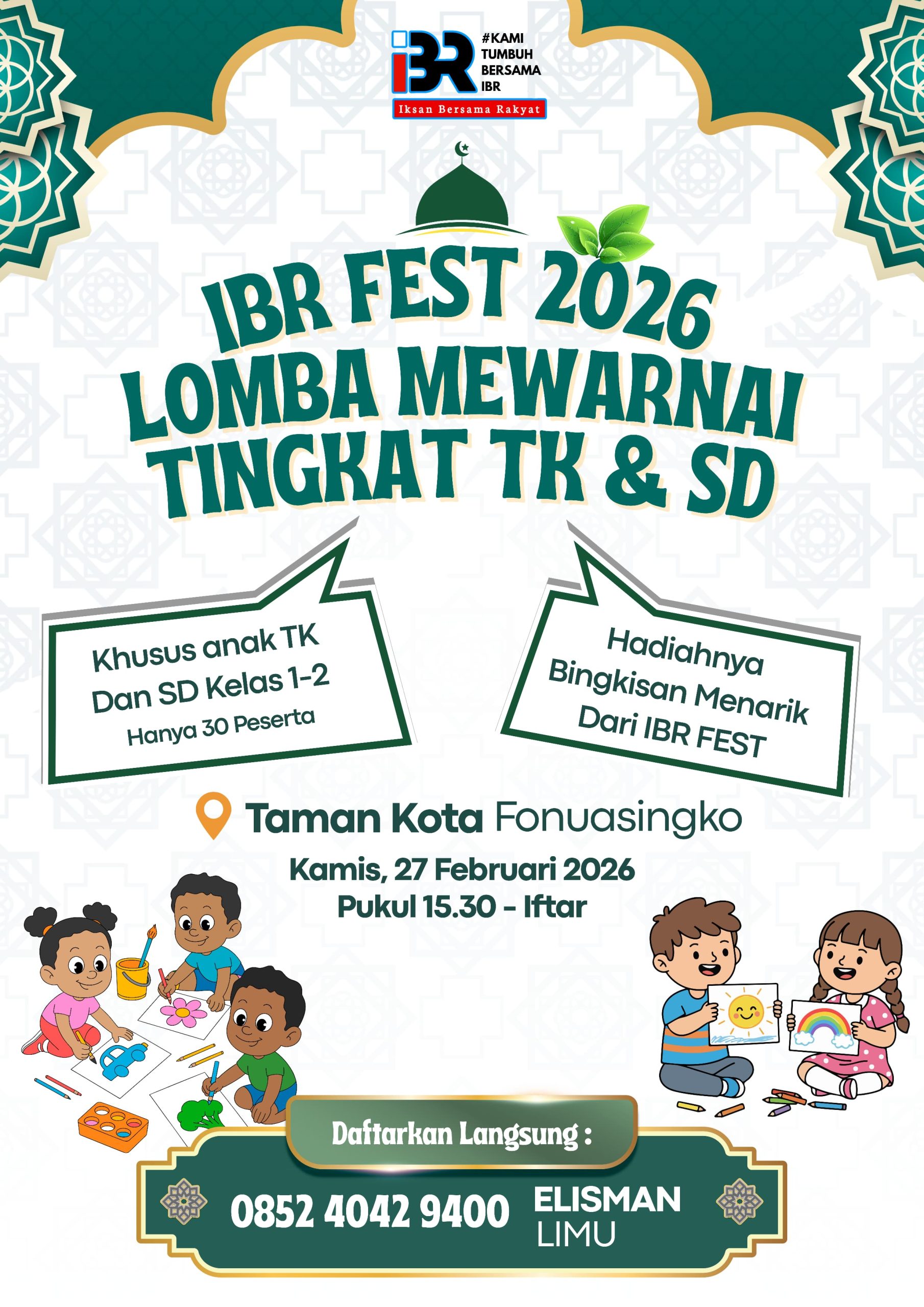 Panitia mengimbau kepada orang tua atau pendamping untuk mendaftarkan putra-putri mereka dan hadir tepat waktu. Informasi lebih lanjut mengenai pendaftaran dan teknis lomba dapat diperoleh dengan menghubungi panitia IBR Fest 2026.
