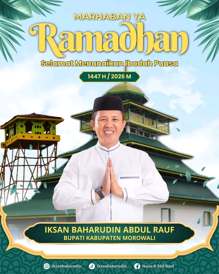 Khabarnews.Id _ MOROWALI – Menyambut datangnya bulan suci yang dinanti-nantikan umat Islam, Bupati Morowali, Iksan Baharudin Abdul Rauf, menyampaikan ucapan selamat menunaikan ibadah puasa Ramadan 1447 Hijriah. Dalam pesannya, orang nomor satu di Kabupaten Morowali ini mengajak seluruh masyarakat untuk menjadikan momen puasa tahun ini sebagai sarana meningkatkan keimanan dan ketakwaan.